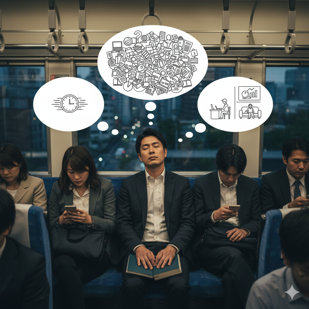 満員電車での立ちっぱなしや、揺れによる物理的な疲労は、あなたが思っている以上に脳の集中力を奪います。座れたとしても、周囲の話し声や広告が視界に入り、勉強への意識がすぐに逸れてしまいます。特に、長時間通勤者は帰宅時になると疲労がピークに達し、「もう何も考えたくない」という状態になりがちです。