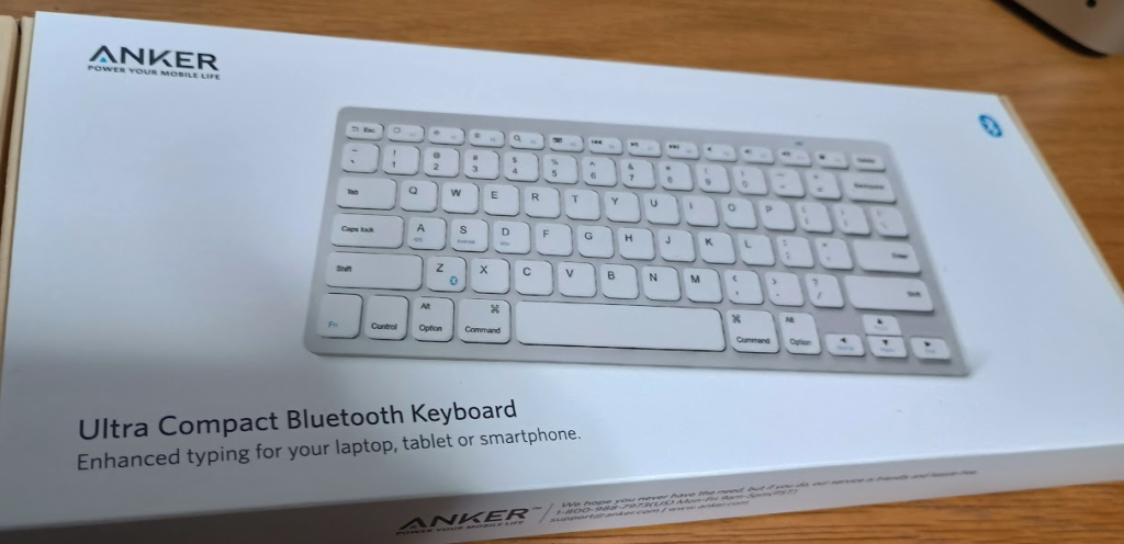 Apple純正のMagic Keyboardは魅力的ですが、価格が少し高めです。そこで、コスパ最強と名高いAnkerのBluetoothキーボードを選びました。