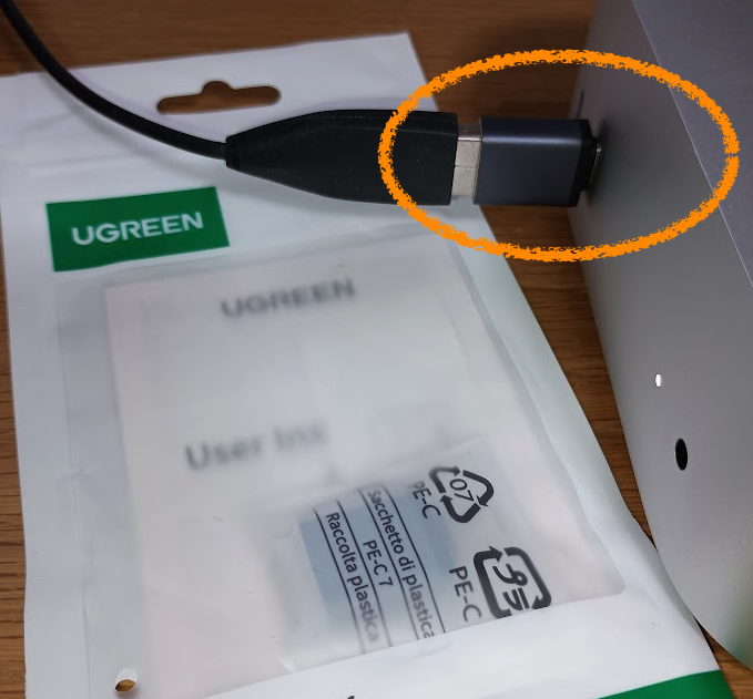今まで使っていた普通のマウス(Type-A)などをMac miniで使うための必需品。とりあえず持っておいて損はありません。