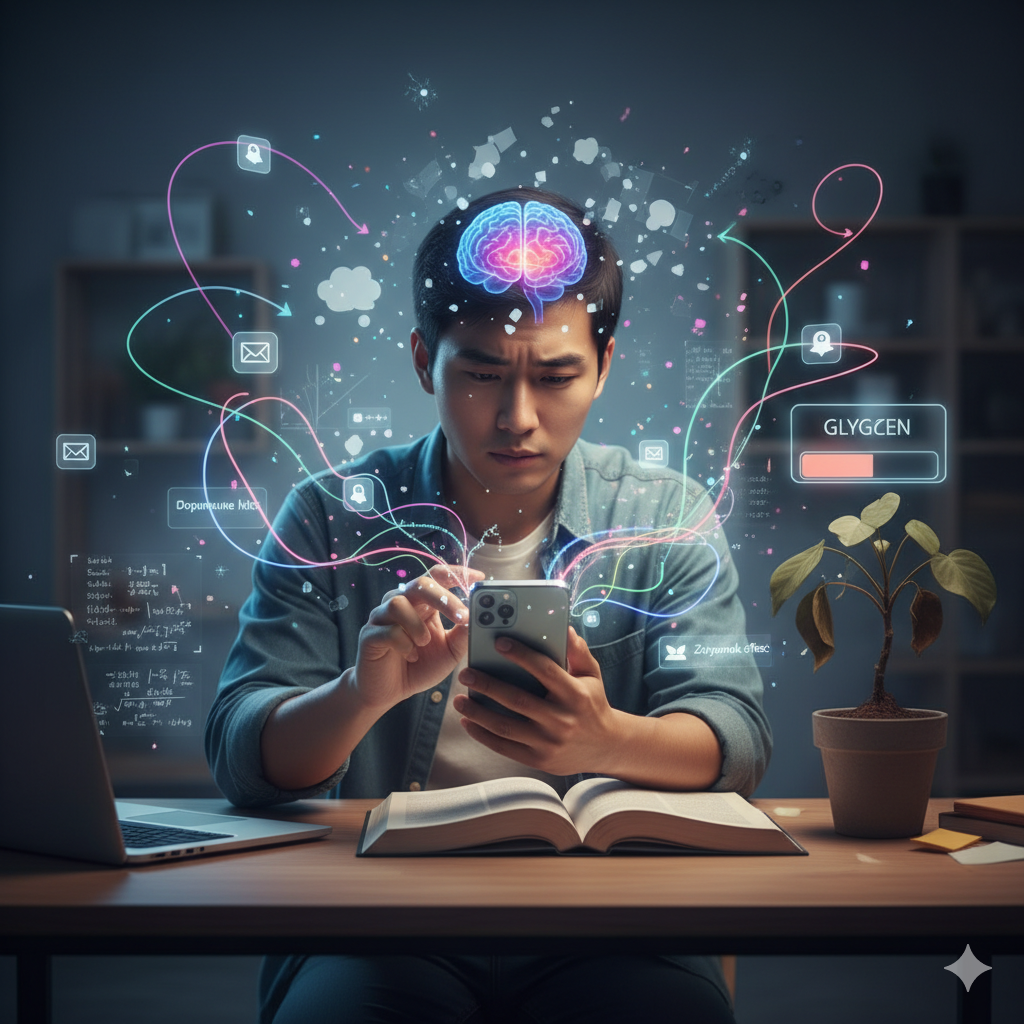 集中力の低下には、主にドーパミン、グリコーゲン、そして注意の分散という3つの要素が関わっています。