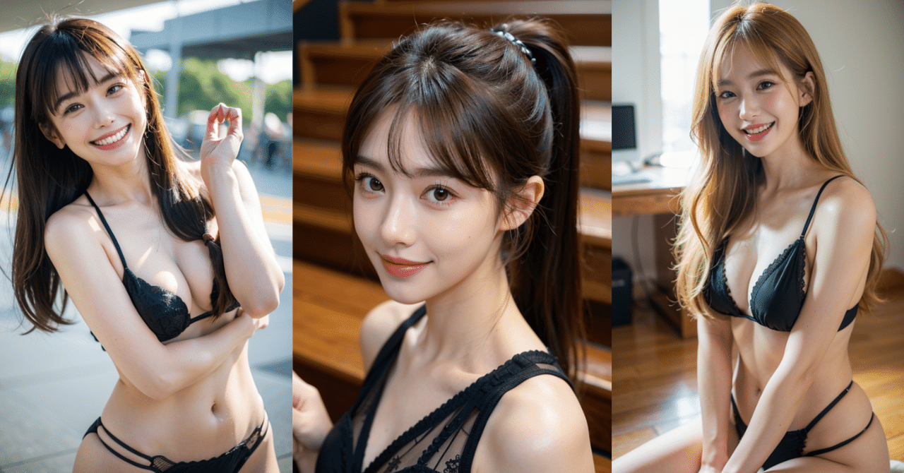 私も上の女性の画像を生成するのに10枚は画像生成しました。